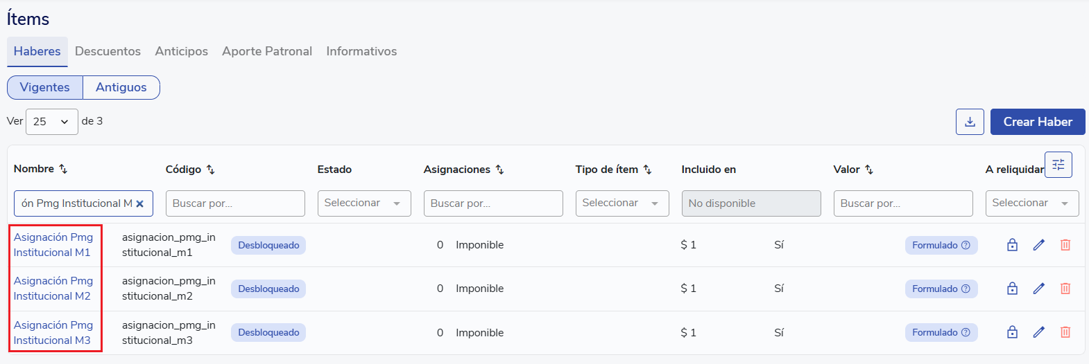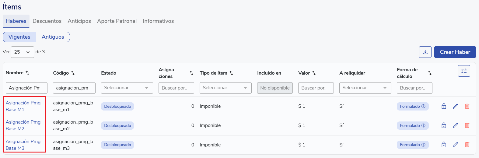 Valida la asignación de ítems y la habilitación de tablas de valores al menos 2 a 4 meses antes de la siguiente reliquidación de PMG.