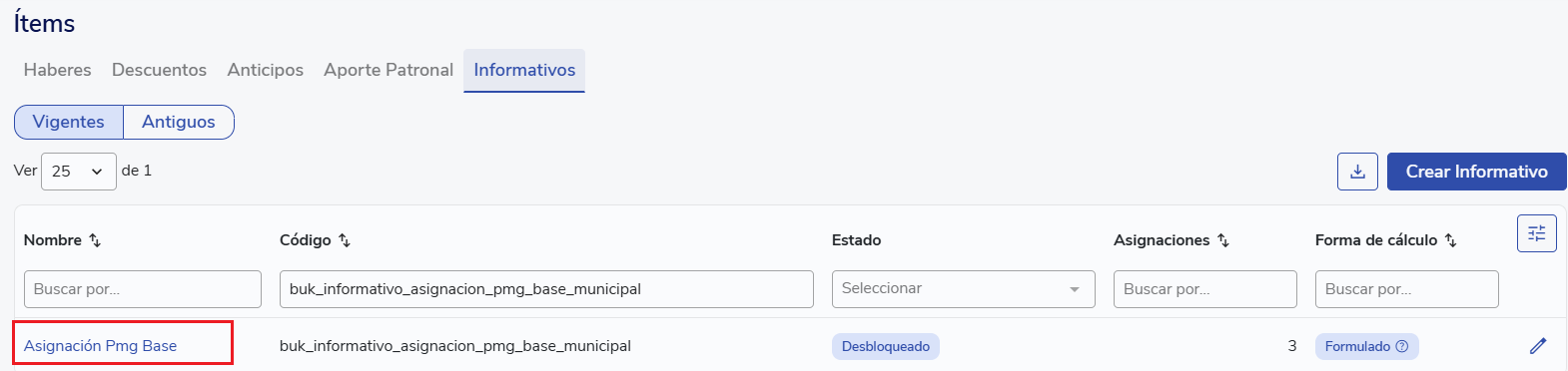 Para habilitar el flujo automatizado de cálculo con los ítems por defecto de Buk, elimina cualquier asignación manual del PMG para evitar pagos duplicados.