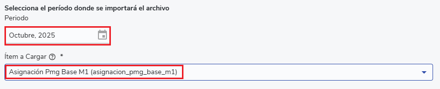 Descarga el archivo de plantilla (template) y completa la información necesaria. Recuerda que la fecha de asignación debe corresponder al mes de devengo del ítem. Por ejemplo, si vas a reliquidar el componente base del primer mes de devengo del periodo de octubre, asigna el ítem del componente base M1 (mes uno) el cual sería julio.