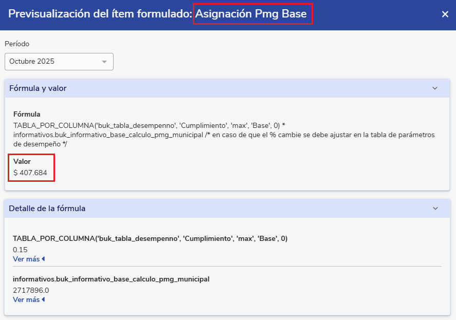 Para habilitar el flujo automatizado de cálculo con los ítems por defecto de Buk, elimina cualquier asignación manual del PMG para evitar pagos duplicados.