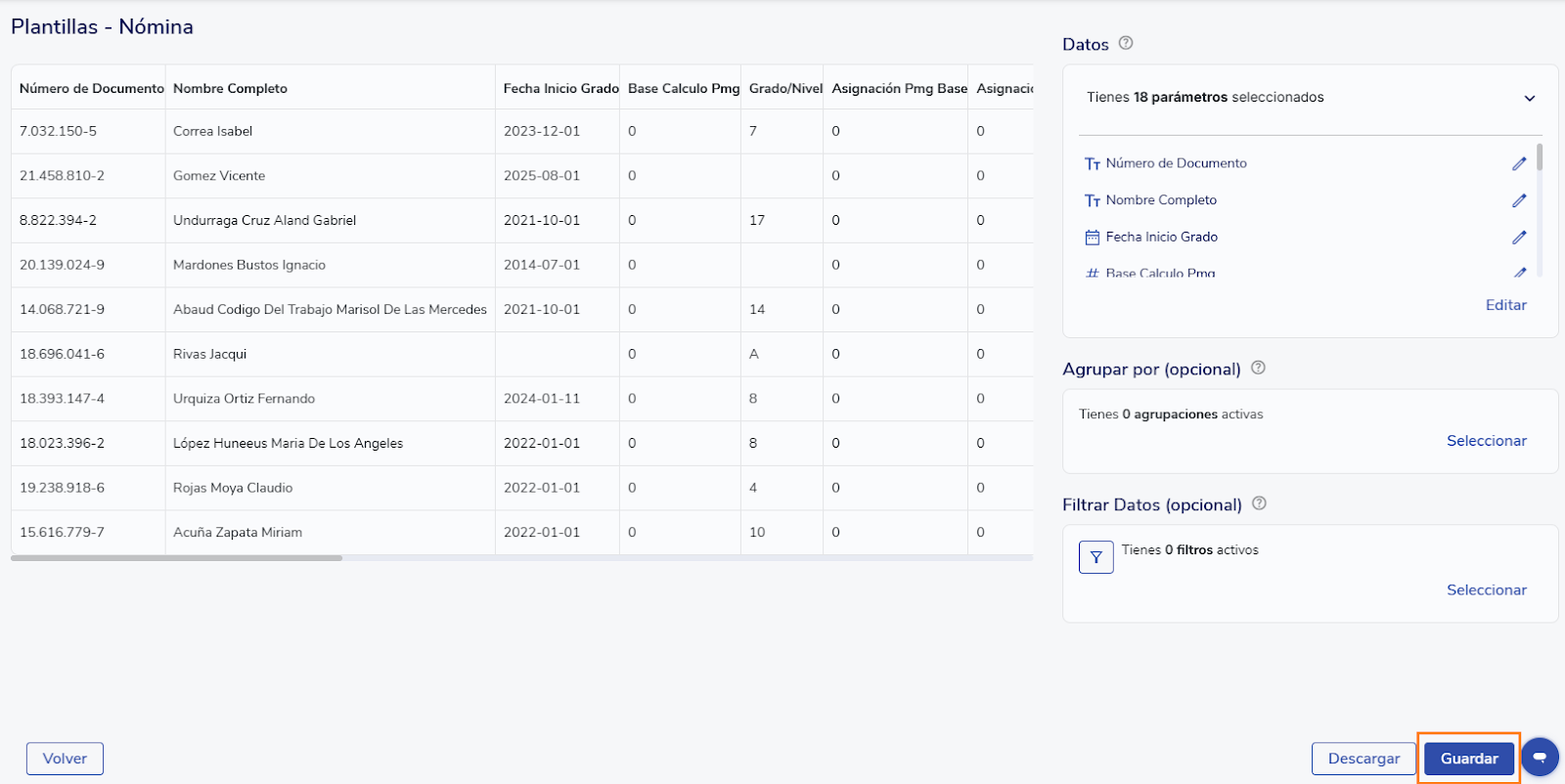 Valida que los importes de los componentes correspondan al grado de cada persona y a los valores entregados por la Contraloría. Realiza esta validación desde el primer mes que se pagará en la próxima reliquidación. Ejemplo: La validación para el pago de octubre debe realizarse desde el mes de julio (M1).