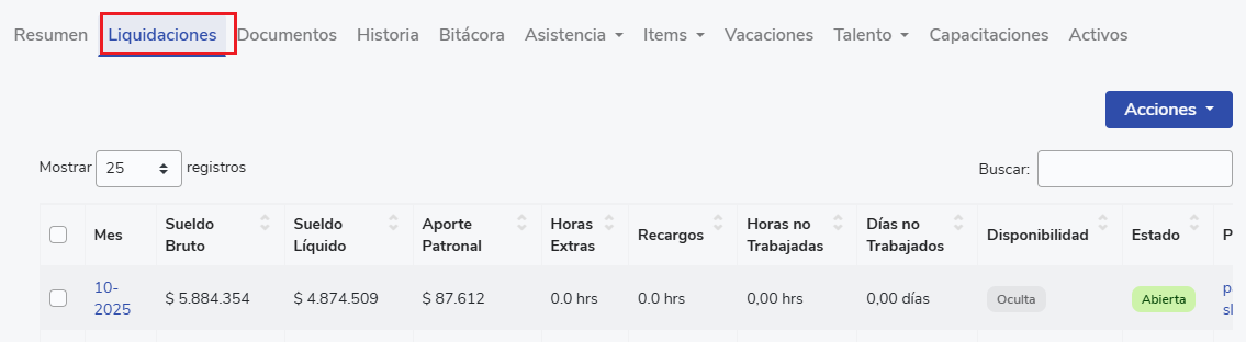 Ve al perfil del funcionario, entra en la sección “Liquidaciones” y previsualiza el periodo que quieres validar.