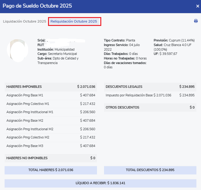 En la sección “Reliquidaciones”, revisa que los ítems estén reflejados en el comprobante.