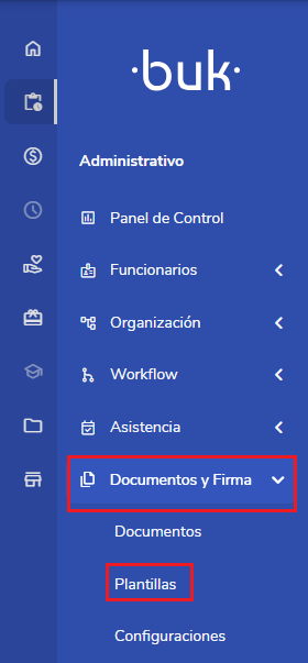 Dirígete a la sección Administrativo > Documentos y Firma y selecciona Plantillas dentro de la plataforma.